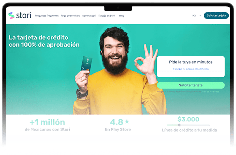 Para acelerar su crecimiento, Stori necesitaba permitir que los usuarios pudieran iniciar su solicitud de tarjeta de crédito directamente desde la web, sin requerir primero la descarga de la app.